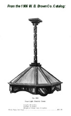 Dr. Michael and Jill Clark, of Elmira, New York, who have published numerous articles and books on the Arts and Crafts movement in America, spent several days in Bluffton researching every aspect of the Brown Company, and its owner designer, W.B.Brown. Already they have written an article published in the November 2000 issue of Style 1900 magazine. They are continuing their research leading toward publication of a book about this company. They are anxious to contact any person who owns a Brown fixture, or who may have any bit of information about the company, its employees, etc. They may be contacted through the Wells County Historical Society web site, or at their Email address: jmyoung@servtech.com/